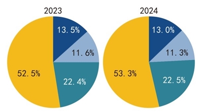 协会认为,2024年以来小型出版商面临的形势愈发严峻。数据显示,2024年前10个月,图书年销量低于100万册的小型出版商销售额同比下降4.9%,图书年销量在100万~500万册之间的中小型出版商销售额同比下降3.6%,图书年销量高于500万册的大中型出版商销售额同比下降0.7%。大型出版集团仍保持积极增长态势,销售额同比增长0.3%。目前,意大利大型出版集团占据53.3%的图书市场份额,其他出版商占比46.7%。
