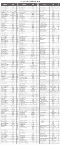 2024年度,共有11839种图书被海外图书馆收藏,这些图书来自430家出版机构。通过筛选OCLC海外馆藏中文书籍被3家及以上图书馆收藏的数据,最终确定了312家出版机构。本报告对中国大陆出版机构出版的中文图书的馆藏量进行了统计,按照每家出版机构作者作品的馆藏总量进行计算,并选取各出版机构馆藏量最高的作家,总结得出“世界影响力作者”榜单(见表3)。(下转第3版) (上接第2版)