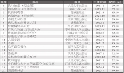 文学艺术热销书45个品种晋入全品类图书热销TOP100(见2版表4),占百种头部市场近半份额;其中原创品34种,占比逾7成。史铁生再成最大赢家,其长期霸榜的《我与地坛(纪念版)》(人民文学出版社),占得领衔位,并同为非主题时政领衔书;其另一纪念版之著《病隙碎笔》(湖南文艺出版社),分列非主题时政书和文学艺术书第4位;其同为人民文学出版社另一版本的《我与地坛》,列文学艺术书第17位。余华虽然也以《活着》(北京十月文艺出版社)和同为江苏凤凰文艺出版社的《女人的胜利》《我胆小如鼠》3种书晋入,但其排序均落后于史铁生作品,因而屈居第二赢家。一人两书晋入的李娟《我的阿勒泰》(花城出版社)、《阿勒泰的角落》(新星出版社),分列第3位和第34位;莫言《不被大风吹倒》(北京日报出版社)、《生死疲劳》(浙江文艺出版社),分列第5位和第31位;按平均位次,莫言著作稍优于李娟著作,列第3赢家,李娟屈居第4赢家。另一一人两书晋入的为排序稍后的迟子建《额尔古纳河右岸》(人民文学出版社)、《也是冬天,也是春天》(长江文艺出版社)。持续热销的梁实秋《快乐就是哈哈哈哈哈》(中国友谊出版公司),刘震云《一句顶一万句》(花城出版社),汪曾祺《人间草木》(民主与建设出版社),马伯庸《长安的荔枝》(湖南文艺出版社),余秋雨《文化苦旅》(长江文艺出版社),沈从文《边城》(江苏人民出版社),罗广斌、杨益言《红岩》(中国青年出版社)等,也纷纷晋入,彰显了大家名著的持久市场魅力。4部史铁生、汪曾祺等名家的散文随笔合集——同为光明日报出版社的《橙青橘绿半甜时》《人群太吵,我想去听旷野的风》和《听风八百遍,才知是人间》(华中科技大学出版社)、《总有路在等你》(湖南文艺出版社)悉数晋入,映射了此类读物的市场热逐。